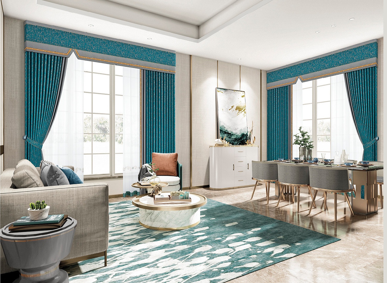孔雀藍,清涼如夏,就像涼涼的微風,應用于窗簾,演繹一派優(yōu)雅從容