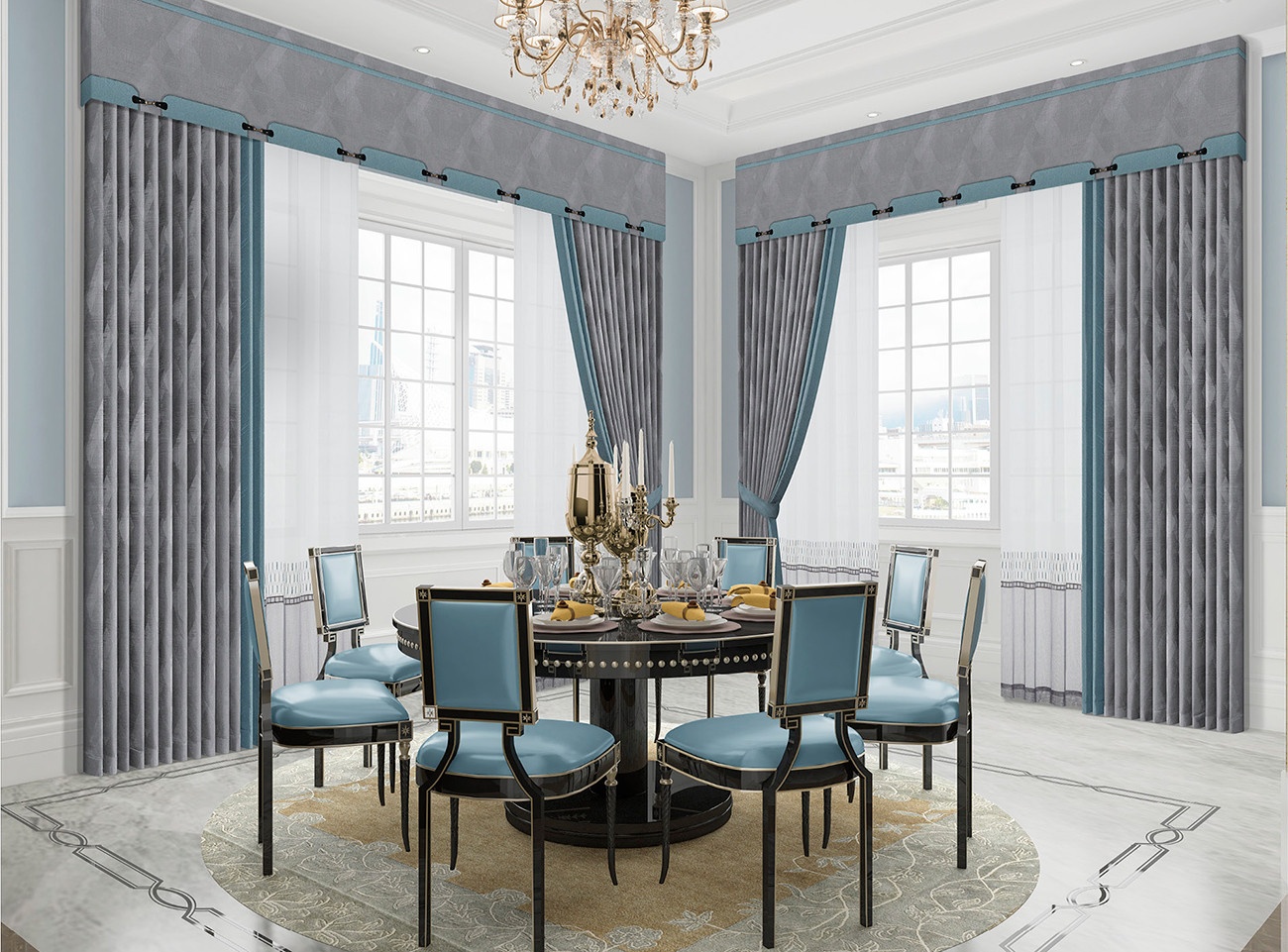 幾何圖案彰顯時尚,黃昏藍感知歲月的柔和,布藝柔軟的外表下隱藏高貴和智慧